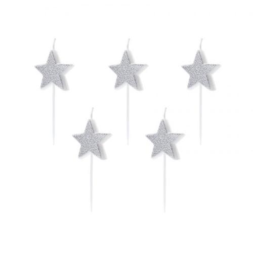 Κεράκια Ασημί Αστέρια - 5τμχ.