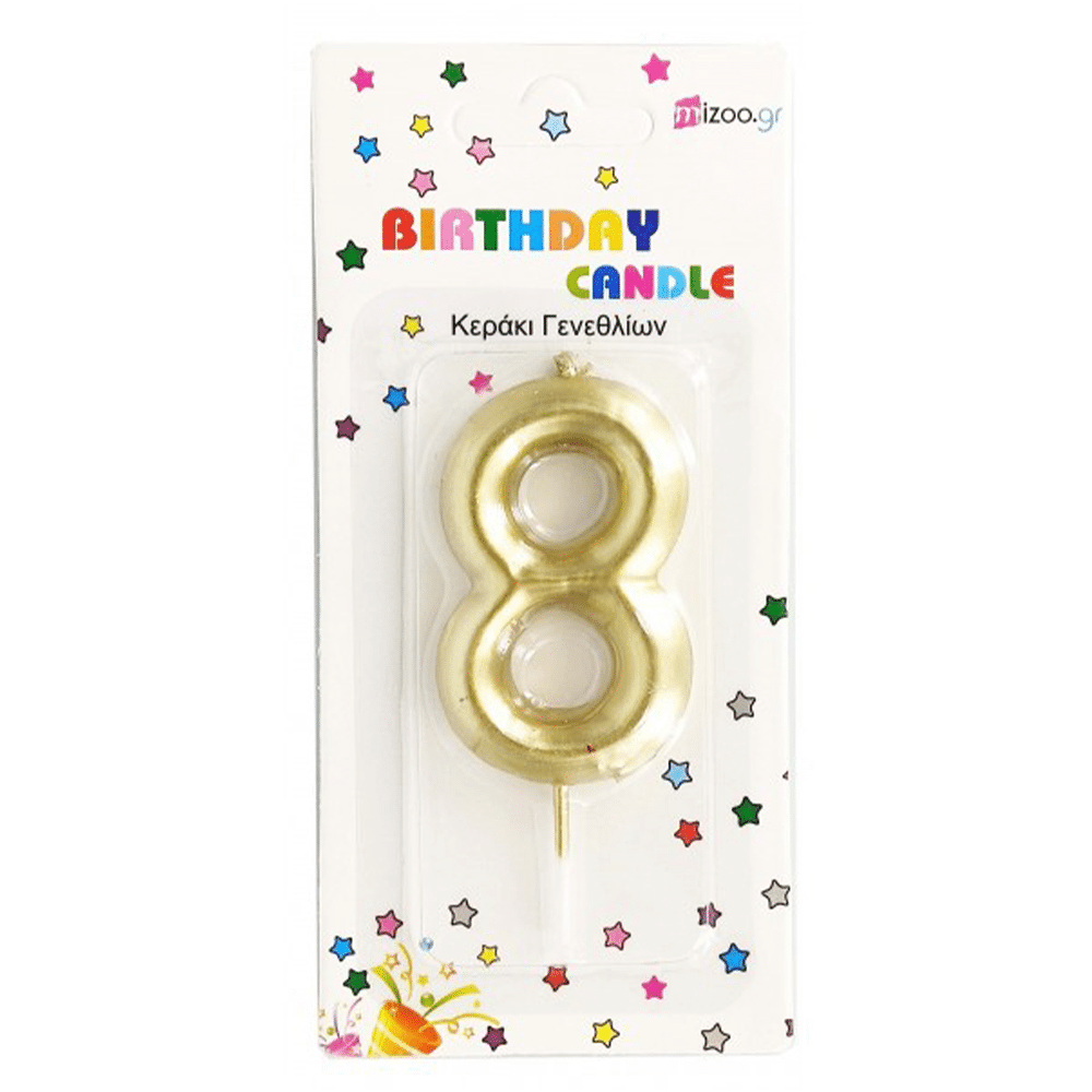 Κερί Τούρτας Νο8 χρυσό 8 εκ