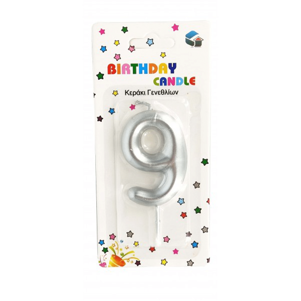 Κερί Τούρτας Νο9 ασημένιο 8εκ