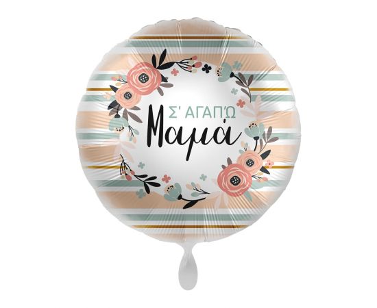 Μπαλόνι Φοιλ 17" Σ' αγαπώ Μαμά με λουλούδια / 43 εκ